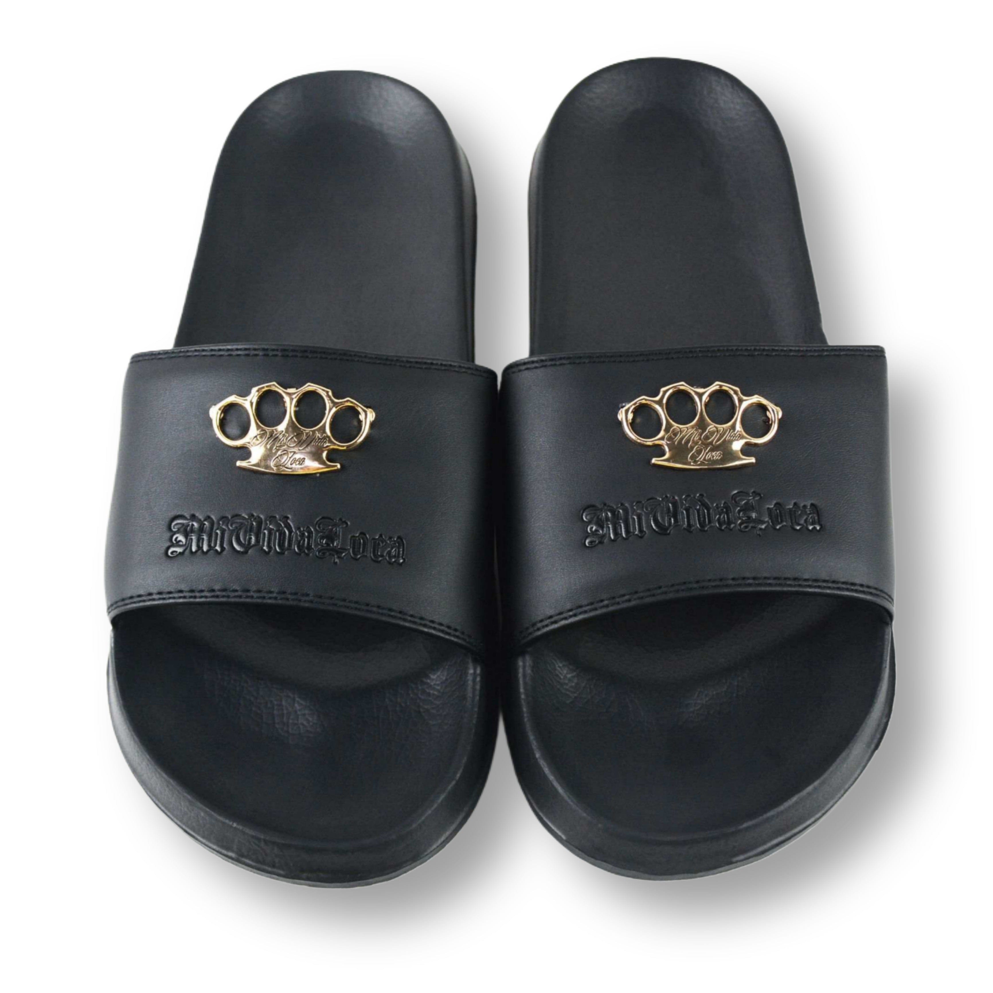 MVL Brass zapatillas de calavera negro/dorado